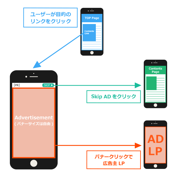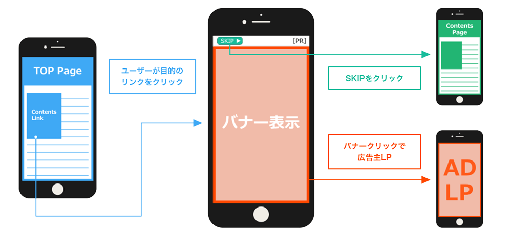 スプラッシュ広告とは、Webページの移動間に広告を露出する手法となります。